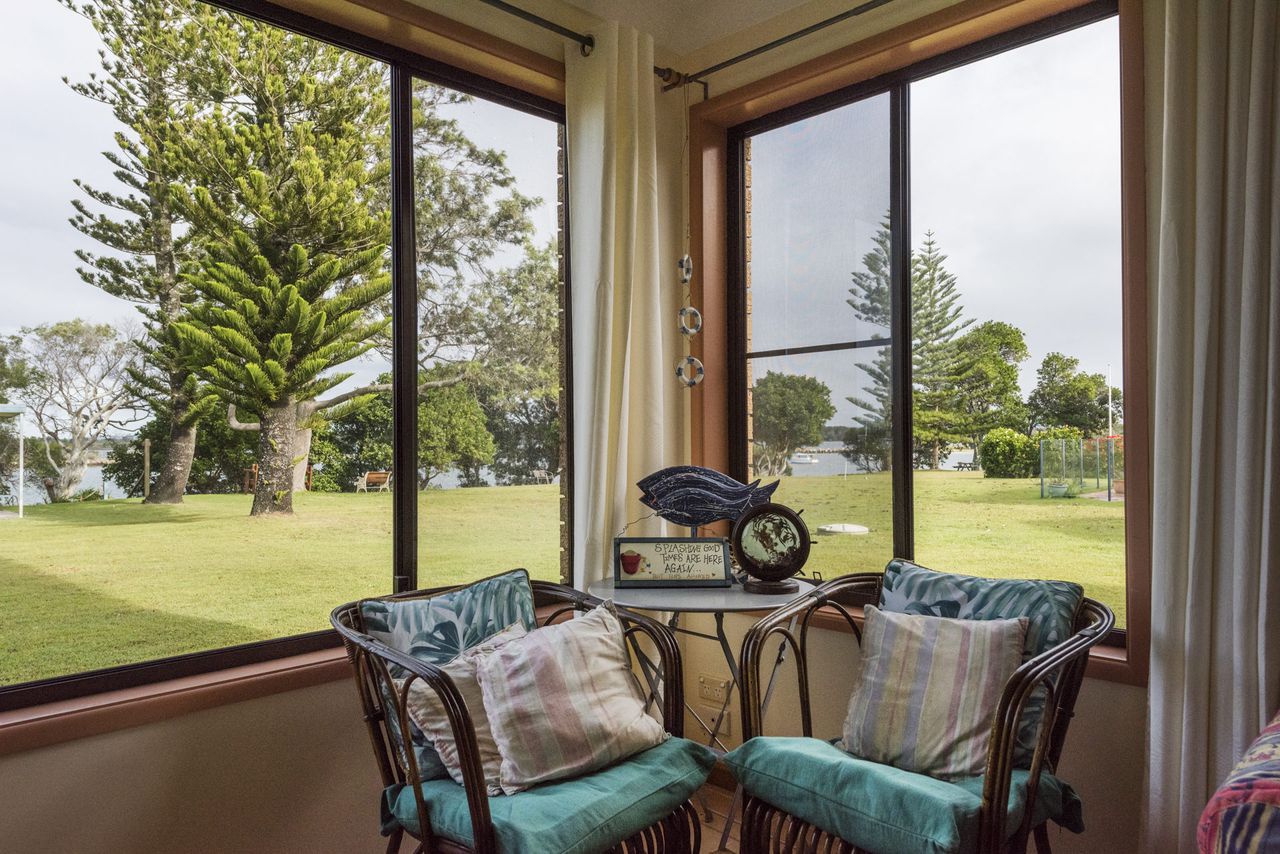 Soak in the spectacular views of the Clarence River from the spacious living area or walk down the steps to the bay for fishing or a swim, or stroll down the path to the hotel or co-op, or across to the Iluka shopping centre.